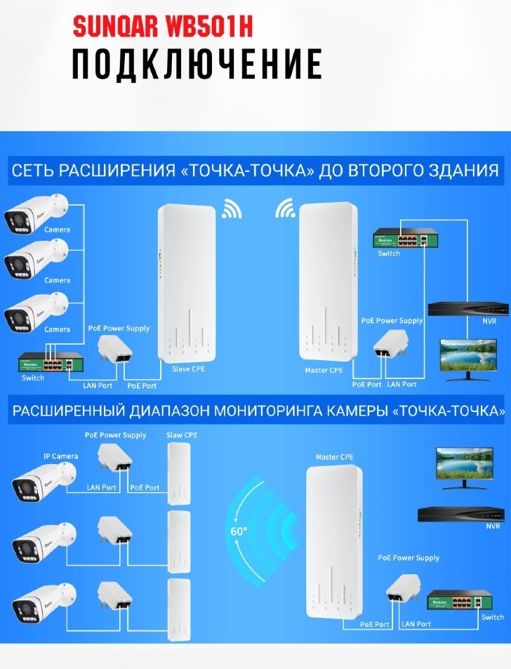 Радиомост 2.4GHz 300Mbps 3000м AI